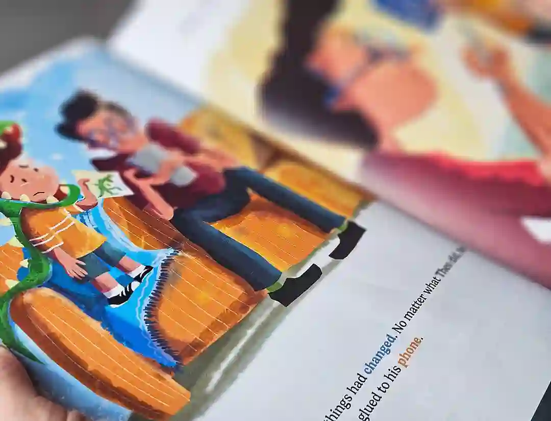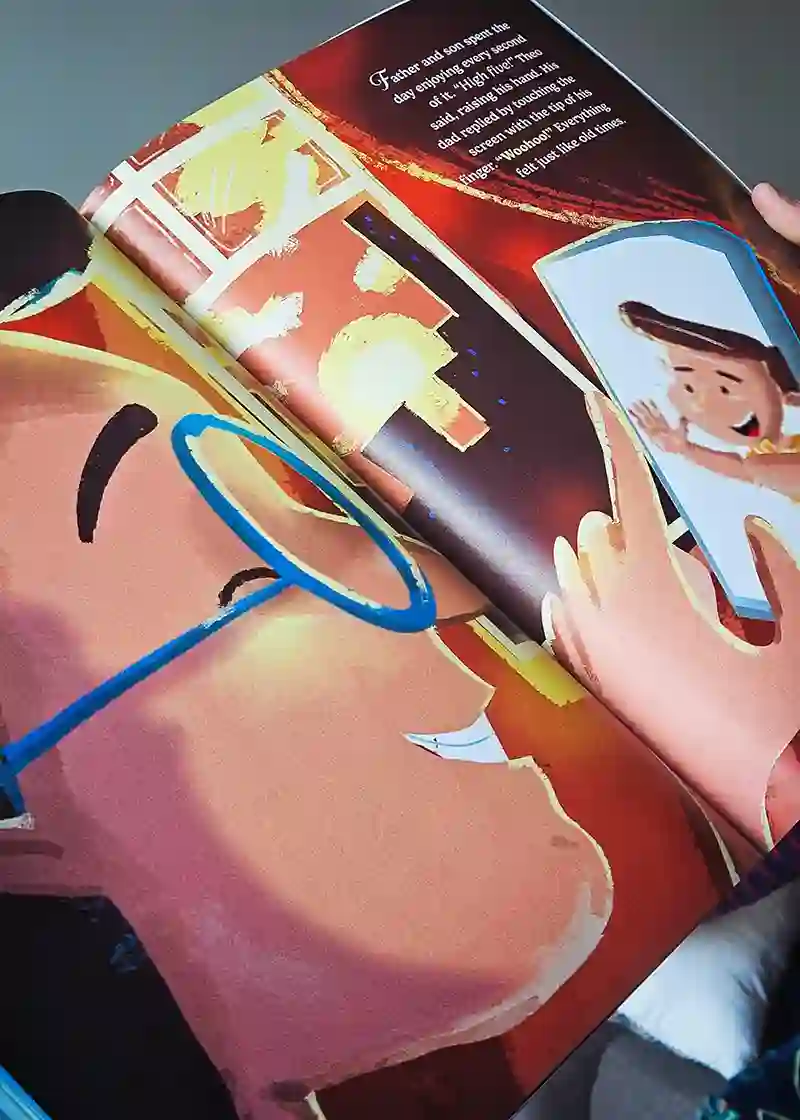 The illustrations are so beautiful and the story kept us engaged the whole time. Really great concept about a kid getting pulled into his dad's phone to reconnect with him, perfect read for this generation. Would definitely recommend for parents dealing with screen time stuff! One person found this helpful